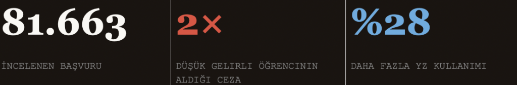 | 81.663 İNCELENEN BAŞVURU | 2× DÜŞÜK GELIRLI ÖĞRENCININ ALDIĞI CEZA | %28 DAHA FAZLA YZ KULLANIMI |
