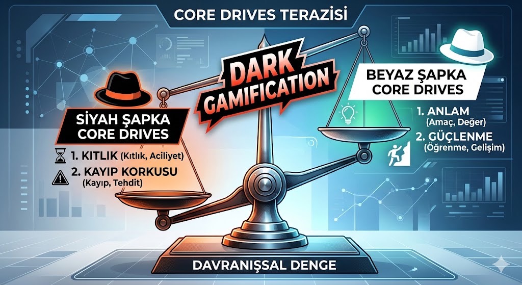 dürtüsünü tetikleyerek bizi heyecanlandırır. Siyah şapka (black hat) oyunlaştırma teknikleri,