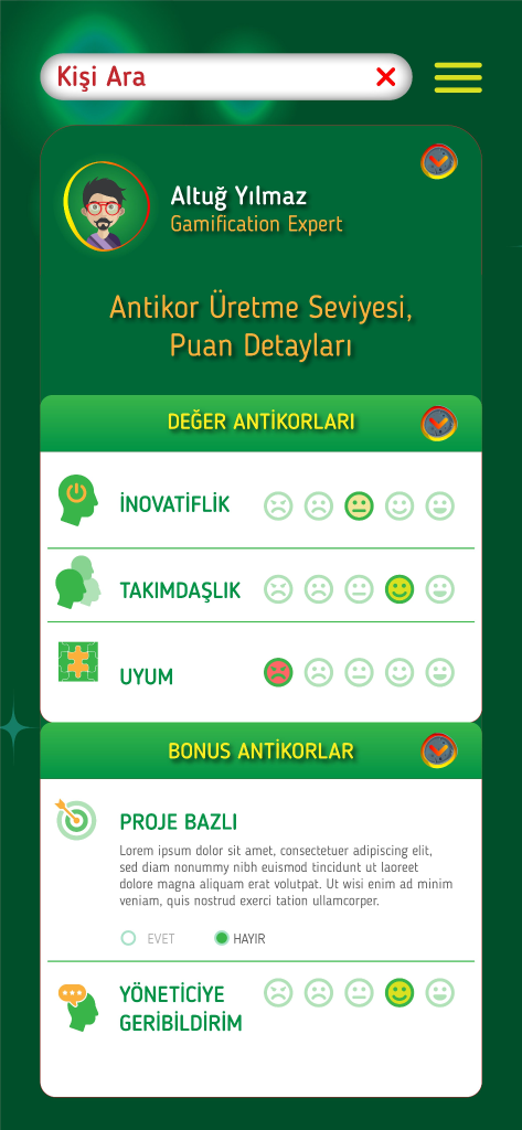 “Çalışanların birbirlerine inovatif gibi değerlerimiz üzerinden geri bildirim verecekleri eğlenceli bir avatar olan “izola” isimli bir mobil uygulama için 4 aşamayı da tasarla”