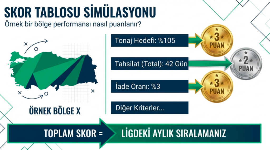 Oyunlaştırma kurgunuzda mesela futbol teması ile satıştaki tonaj hedeflerini hep %80-90 ile tutturamayanları öne çıkaracak bir puanlama öner: