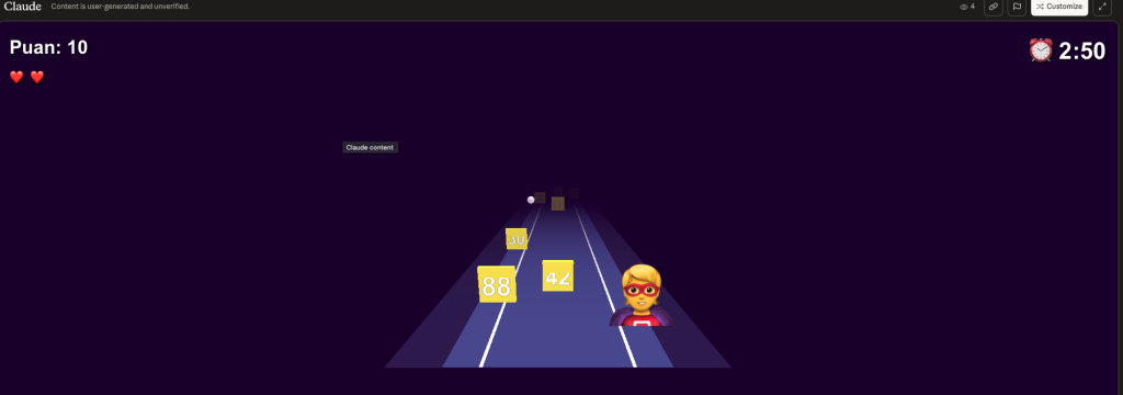 1.Oyun: https://claude.ai/public/artifacts/0c0ecc3e-9fde-457f-970b-e87b389324f8